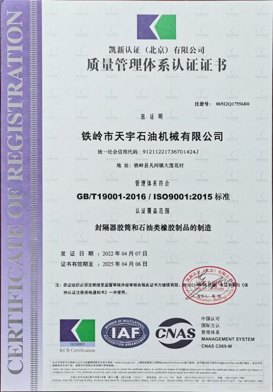 • 您好,歡迎來到鐵嶺市天宇石油機械有限公司(鐵嶺市鐵南橡膠制品廠)!